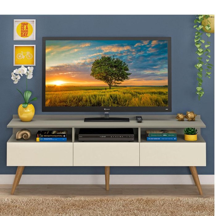 Rack Retrô Paris com 3 Portas e 3 Nichos - Cinza/Champagne