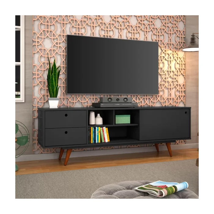 Rack Retro Tv 60 Polegadas 85 Com Gavetas Preto Ac