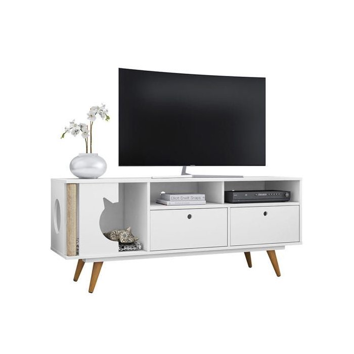 Rack Retro Tv até 55 Polegadasarranhador Pet Angora Branco Ac/branco Ac