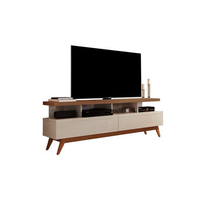 Rack Retrô TV Até 72 Polegadas Pés De Madeira 2 Gavetas 4 Nichos Vivare Wood 1.60:Off White/Freijó