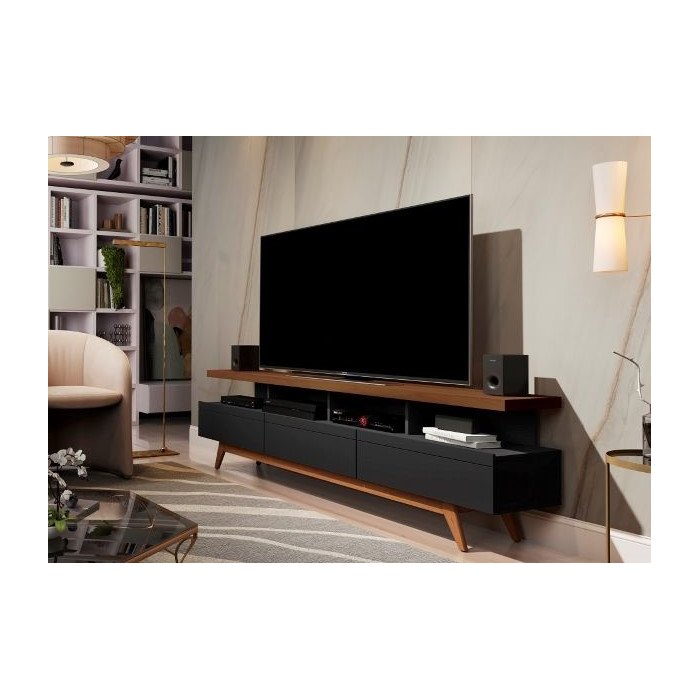 Rack Retrô Tv até 72 Polegadas Pés de Madeira 3 Gavetas 4 Nichos Vivare Wood 1.80:black/freijó