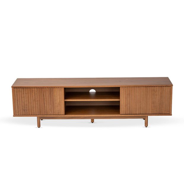 Rack Ripado para TV até 65 Polegadas MDF 180cm Pés em Madeira Maciça Rischio Cappuccino