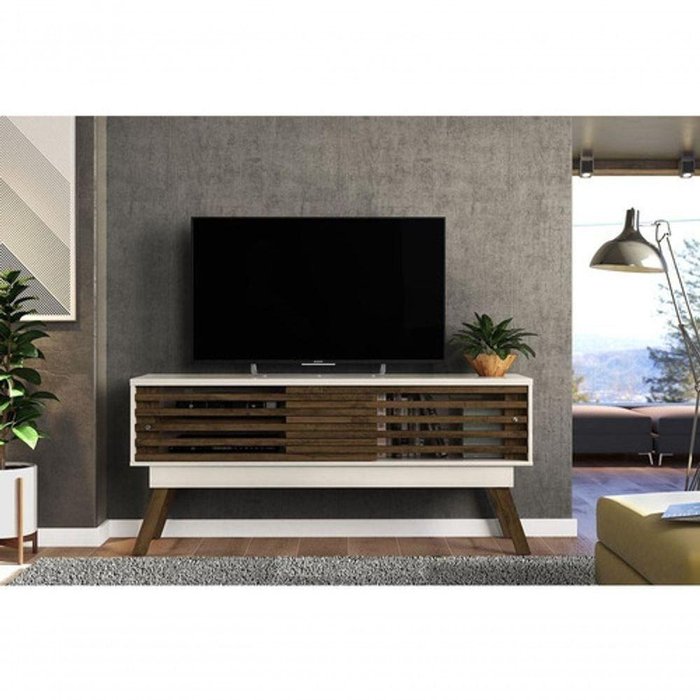 Rack Para Sala Bancada Para Tv Até 65 Polegadas Frizz 1.5 2 Portas Cor Off White E Savana - Madetec Móveis