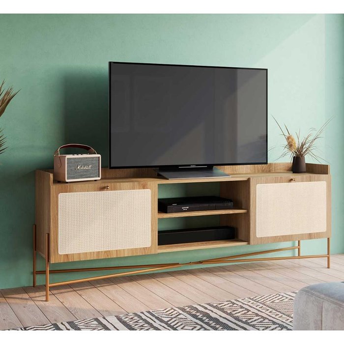 Rack Sala Retrô para Tv 65 Polegadas Tela Sintética 2 Portas Cor:hanover com Dourado