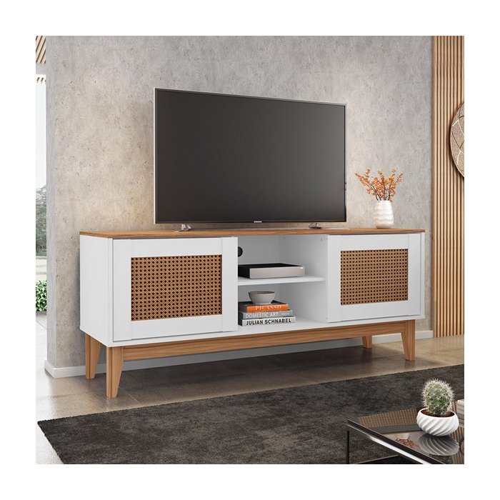 Rack Sala Safira para TV até 55 Polegadas com Pés em Madeira