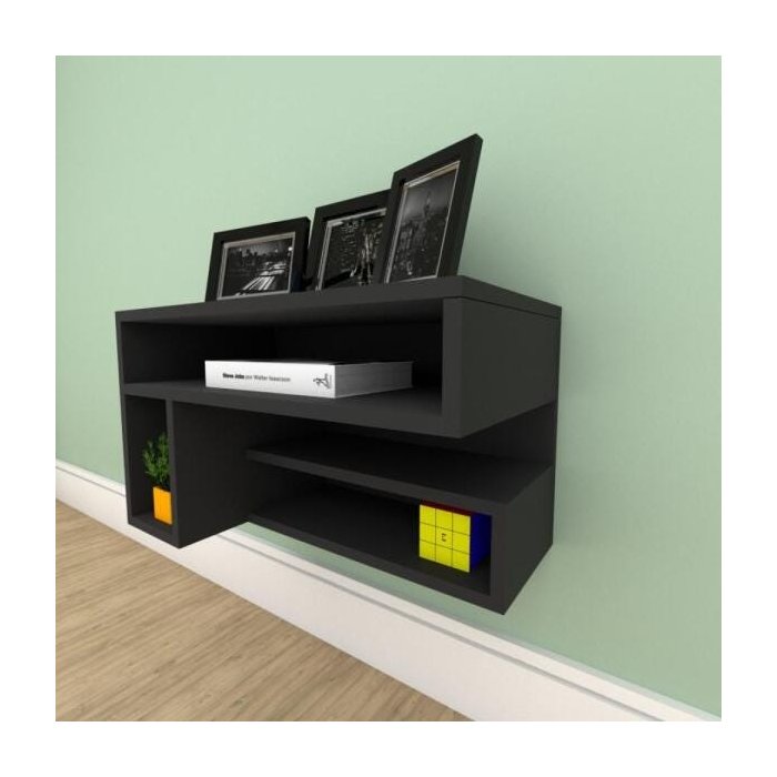 Rack Slim com Nichos Prateleiras Em MDF Preto
