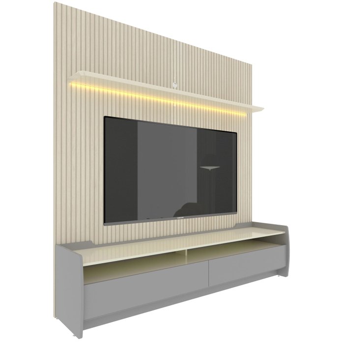 Rack Sublime com Painel Requinte 1.8 Cinza com Off White - Gelius Móveis