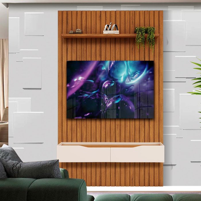 Dimensões do produto: Largura 143,7 cm; Profundidade 35,5 cm; Altura 240 cm.Itens Inclusos: 1 Rack com PainelO Painel e Bancada Pratic é um produto flexível e elegante que pode ser o destaque de diferentes ambientes no seu lar. Toda sua extensão é composta de peças ripadas de MDF de 15mm, que são chapas de madeira reconstituída advindas de reflorestamento, matéria prima que não prejudica o ambiente e garante durabilidade e resistência ao seu produto. Além disso o Painel Ripado Pratic conta com uma ampla prateleira de 25mm de espessura e com borda chanfrada, onde você pode manter objetos decorativos em posição de destaque. A Bancada Suspensa conta com gavetas com charmosos detalhes usinados, trazendo uma maior sofisticação ao conjunto. Este produto comporta TV’s de até 60”, enquanto a resistência do Painel é de até 40Kg, lembrando disso você consegue comprar a TV ideal para usar em conjunto com este móvel, garantindo o melhor do entretenimento para sua família. Não se preocupe com os cabos, este produto possui passa-fios para facilitar a organização dos cabos por trás do produto. O Painel Ripado Pratic com Bancada Suspensa é um produto cheio de benefícios, perfeito para dar aquele toque especial na sua casa, aproveite e torne seu lar mais aconchegante com este lindo produto.Complexidade da montagem: Média, pode ser montado por apenas uma pessoa e/ou necessite de maior conhecimento para montagem.Recomendações de uso, manutenção e limpeza: Limpar com flanela ou pano macio seco, não utilizar produtos abrasivos, desengordurantes, álcool ou solvente. Não expor o produto diretamente a luz solar e à umidadeGarantia: 3 mesesOBS: Foto meramente ilustrativa, objetos, utensílios e decoração não fazem parte do produto.