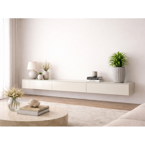 O Rack Suspenso Línea agora em uma nova versão para TV até 75 Polegadas é perfeito para quem busca um ambiente moderno, organizado e funcional. Com design minimalista e acabamento de qualidade, otimiza o espaço da sala e valoriza a decoração.