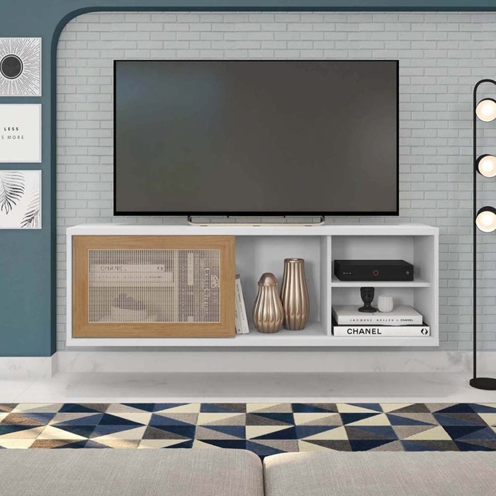 Rack Suspenso para TV até 55 Polegadas 136cm em BP Porta Telada Multiverso Branco/Buriti