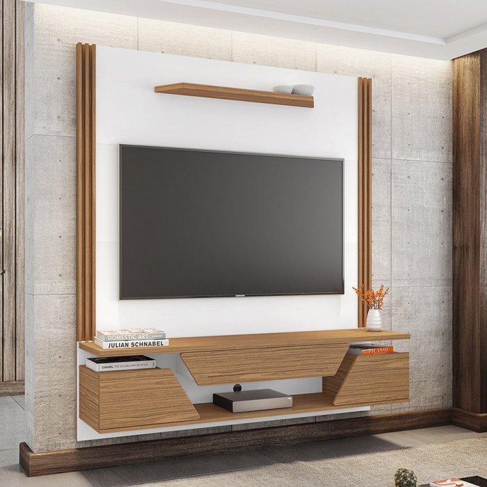 Rack Suspenso Para TV até 60 Polegadas 160cm 2 Portas 1 Gaveta Valley Casa D Branco/Noce