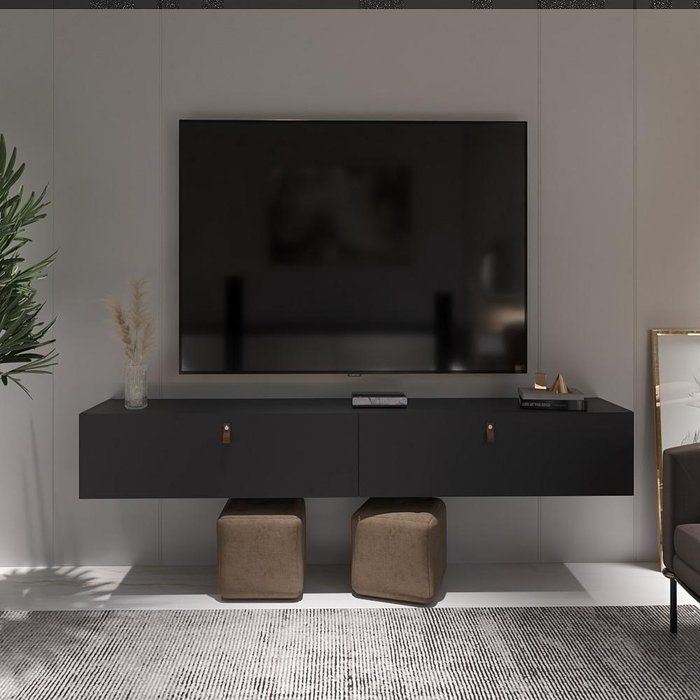Rack Suspenso para Tv até 70 Polegadas 2 Portas Grécia 180cm Preto e Nature