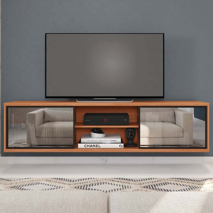 Rack Suspenso para Tv até 72 Polegadas 180cm em Bp Porta Reflecta Multiverso Freijó/Preto