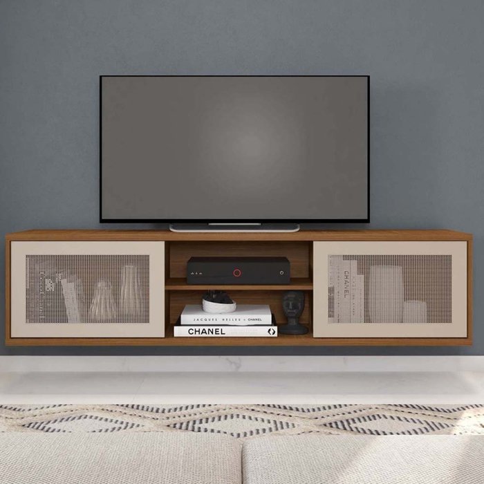 Rack Suspenso para TV até 72 Polegadas 180cm em BP Porta Telada Multiverso Nogueira Caiena/Off White