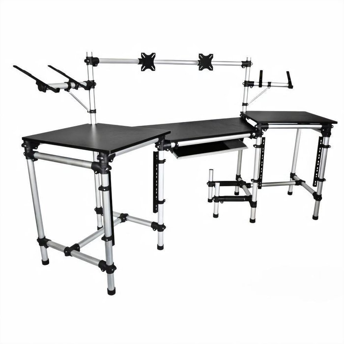 É um rack fabricado em alumínio, o que o torna leve para transporte, totalmente desmontável e resistente para suportar aparelhos pesados. Os Suportes são modulares podendo acomodar e adequar o seu equipamento da melhor forma e posição para sua performance de trabalho.