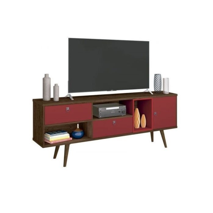 Rack Tóquio Carvalho/Vermelho - Germai Móveis