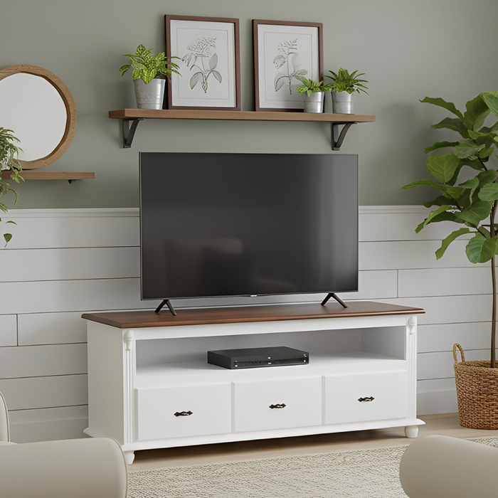 Rack Tv 3 Gavetas Nicho e Tampo de Madeira 501 Laca Branca