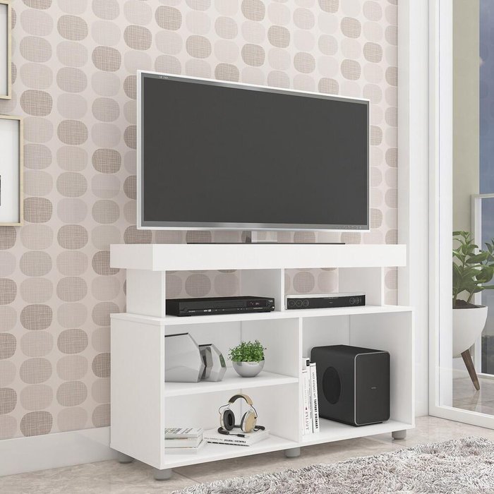 Rack Tv Até 32 Polegadas 90Cm Branco Nichos Slim Permobili