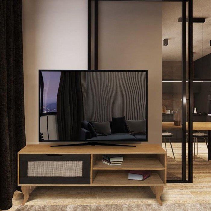 Rack Tv até 50 Madeira Maciça Florença Telinha Palha - Imbuia/preto PRETO