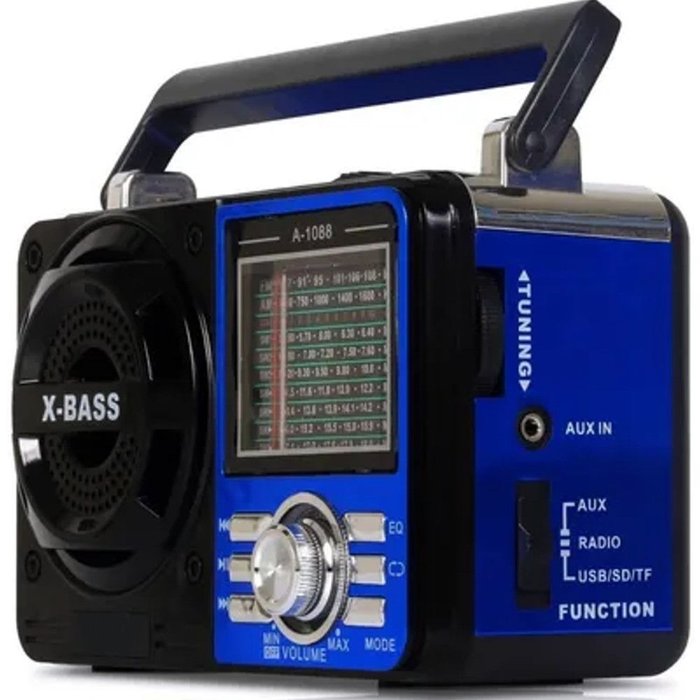 CAIXA DE SOM PORTÁTIL COM RÁDIO AM/FM ANALÓGICO, FM ESTEREO, ENTRADA USB E ENTRADA PARA CARTÃO SD, ENTRADA AUXILIAR, BIVOLT - MODELO A - 1088 COM BLUETOOTH