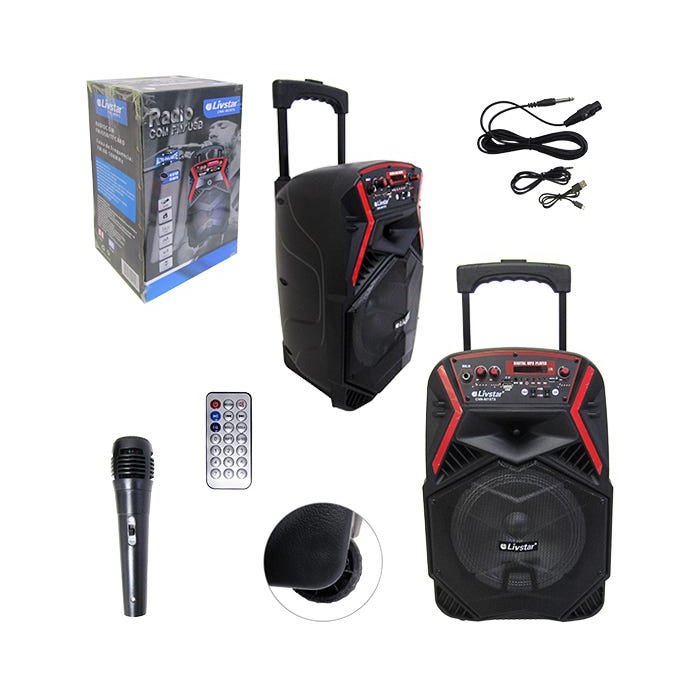 Rádio / Caixa de Som Recarregavel 40W Bivolt com Luz e Microfone Bluetooth / USB / Aux / Tf / FM