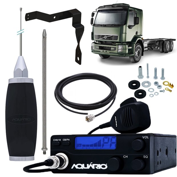Rádio Px 40 Canais Antena Maria Mole Inox 2,70m Alongador 60cm Cabo 5,5m Suporte Volvo Vm Lado Motor