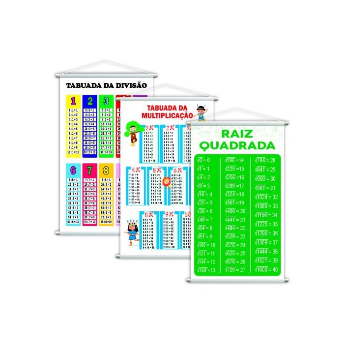 Raiz Quadrada + Multiplicação + Divisão Kit 3 Banners 80x50cm