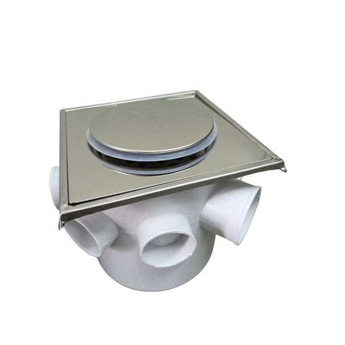 Ralo Click 15x15 com Aro e Caixa Sifonada Banheiro Lavanderia Inox Polido Espelhado