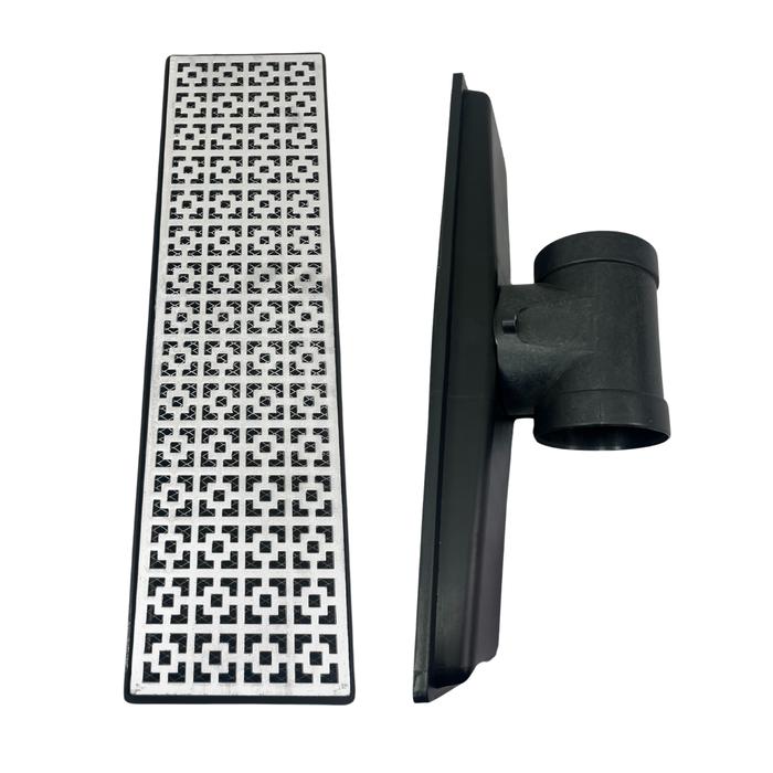Ralo de Alumínio 15x50 Desenho Dubai com Coletor Saída Baixa Tubo 100mm e Difusor Lateral