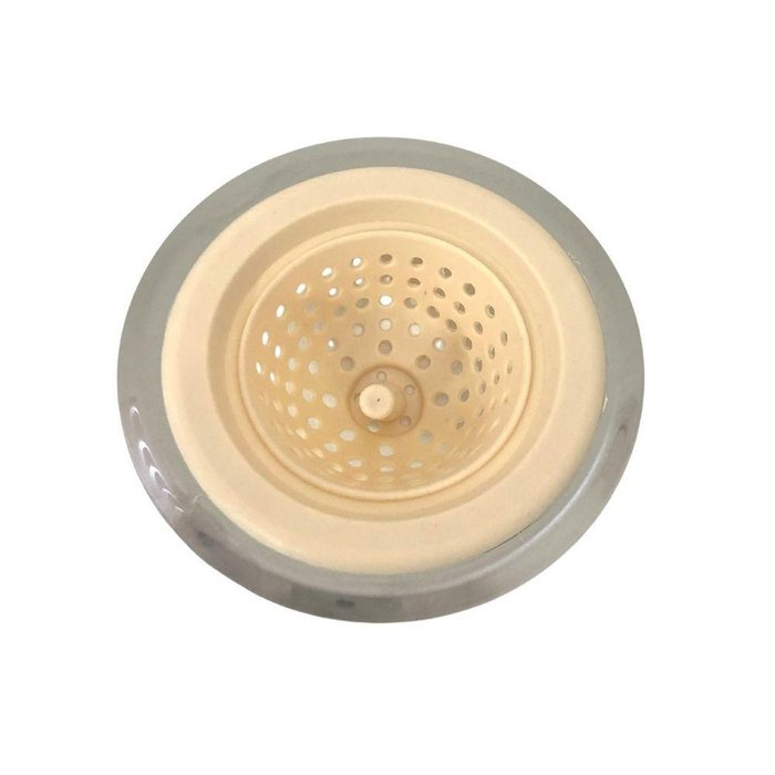 O Ralo de pia em silicone e aço inox redondo 11,5x5cm Creme, permite que a água passe enquanto captura pedaços de comida, fazendo com que o líquido drene perfeitamente enquanto bloqueia as partículas de alimentos. A borda ampla garante que o ralo se encaixe em drenos maiores.