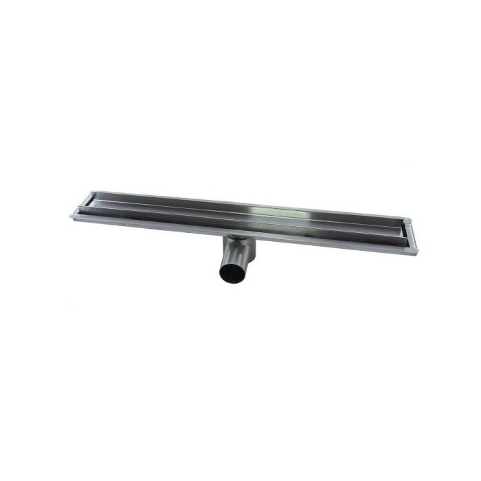Ralo linear Oculto 50 cm X 6 cm com saída de 40 mm no centro da peça na horizontal ou na vertical, poise o conexão é móvel. Altura total de ralo é 8 cm. Indicado para prédios, em banheiros, áreas internas e externas. Produto de qualidade INOX 304.