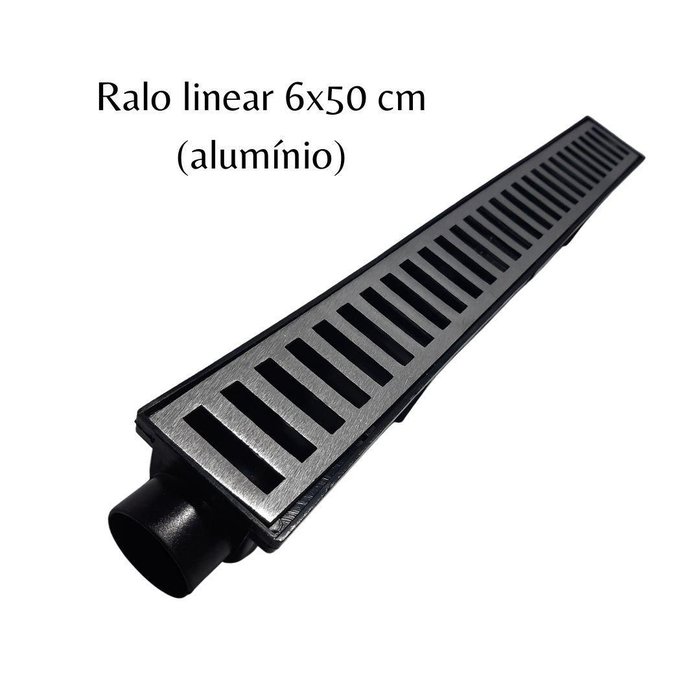 Ralo Linear Piscina Sifonado 6X50Cm Com Coletor Cinza E Grelha De Alumínio