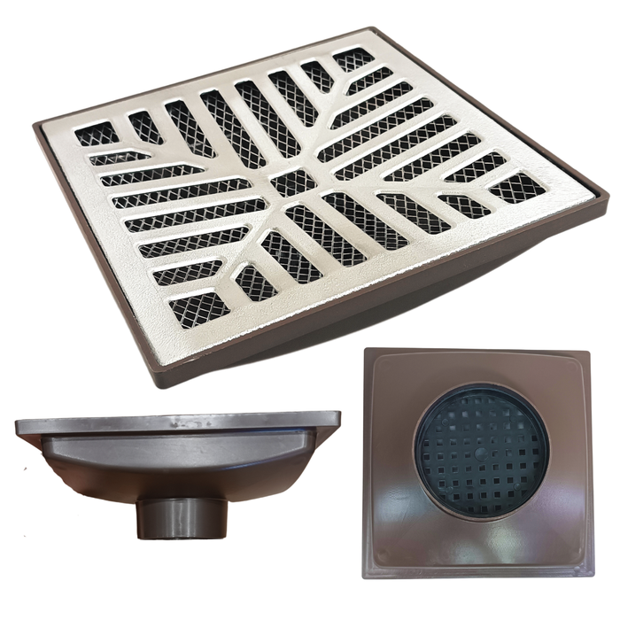 Ralo Pluvial 20x20 Alumínio Concova Coletor Marrom Saída Baixa para Tubo de 75mm Marrom