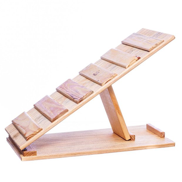 Rampa auxiliar para Pets HG - com escadinha de apoio;Auxilia a subida e descida do seu amigo com maior tranquilidade e conforto. Evitando traumas que prejudicam as articulações do seu amigo.Características:- Estrutura feito em madeira PINUS;- Possui ALTURA regulável em 02 estágios: 32 e 42 cm;- É dobrável;- Possui proteção de borracha antiderrapante na parte de baixo;- Recomendo para PET até 30 kg;- Produto vai montado;- Por se tratar de produto natural, pode sofrer variações na tonalidade da madeira;• Largura: 30.00 cm• Comprimento: 68.00 cm• Altura: 8.00 cm• Peso: 4 Kg