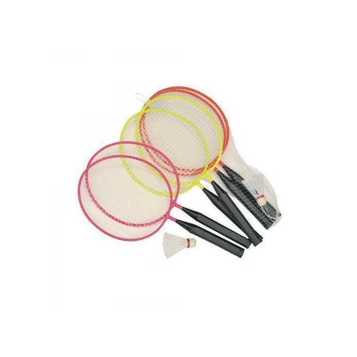 Kit Badminton Infantil 2 Raquetes 1 Peteca. Acompanha 2 raquetes encordoadas de aço, 1 peteca de plástico e 1 porta kit com saco de malha sortida. É resistente, proporciona ótima potência. Tem boa absorção aos impactos. De fácil manuseio para as crianças se divertirem ou treinarem. Leve, pesa 90g. Unissex. Nada que compõe o kit é pontiagudo, portanto seguro para as crianças.