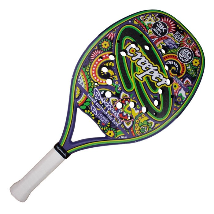 A raquete QUICKSAND CREEPER usa as tecnologias SLIM MOULD com espessura de 22mm, MULTI-HOLE com furos espalhados ao redor do centro da raquete. Composta por CARBON 3K com o novo BLACK EVA SOFT de alta densidade, onde a batida da bola na raquete é sentida intensamente, sem deixar de lado o controle e o conforto. Ideal para jogadores de nível intermediário e avançado em Beach Tennis, que buscam um equipamento que gere mais potência em seus golpes. A raquete possui um jateamento rugoso especial que promove uma melhor performance de alguns golpes como smash e saque.