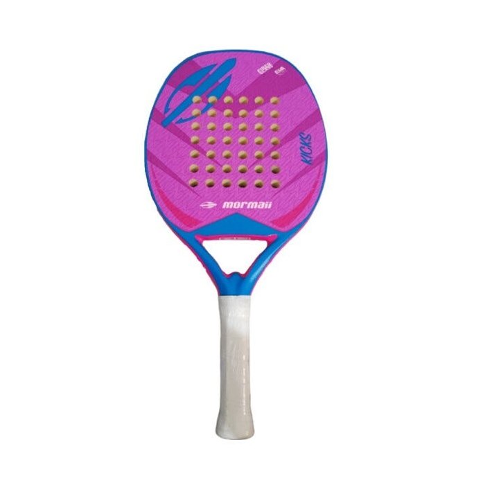 Raquete de Beach Tennis Mormaii Kicks Rosa pertence a linha de raquetes intermediarias. Com ela você vai se sentir no topo da qualidade e desempenho em quadra. A raquete possui a espuma Eva Soft que é mais confortável e proporciona melhor potência nas batidas da bola na raquete. Possui um ótimo jateamento rugoso, para aumentar os efeitos e controle nos em todos os golpes, que faz dela uma raquete equilibrada com muito conforto e potência