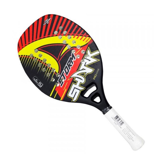 A Raquete de Beach Tennis Shark Storm 50 - 2020, desenvolvida para a prática de beach tennis, modalidade também denominada como Tênis de Praia, no Brasil.