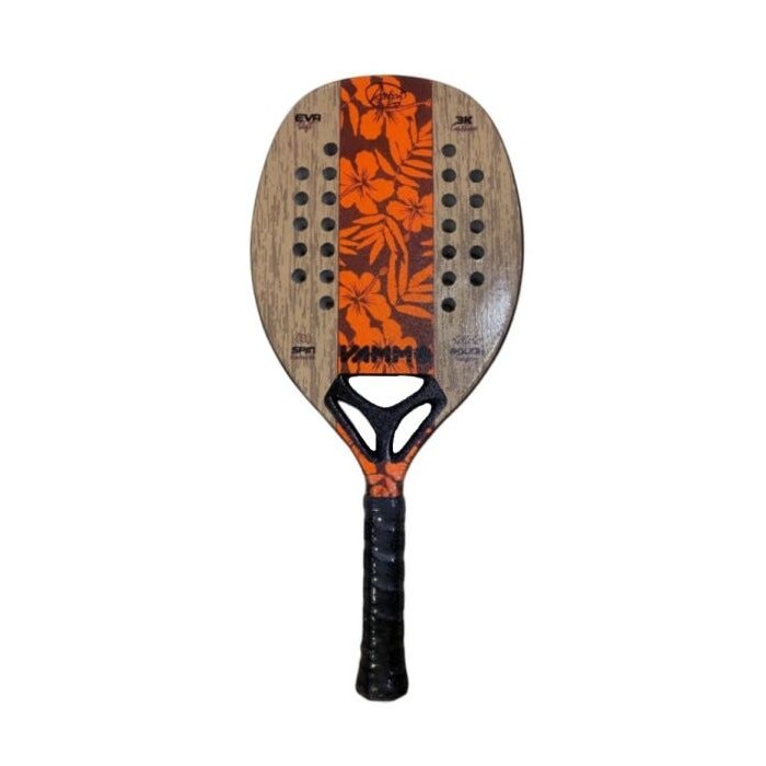 Raquete De Beach Tennis Vammo Action desenvolvida com tecnologia Carbono 3k preenchida com EVA Soft gerando muito controle pelo carbono, conforto pelo EVA soft e potencia pelo seu peso.