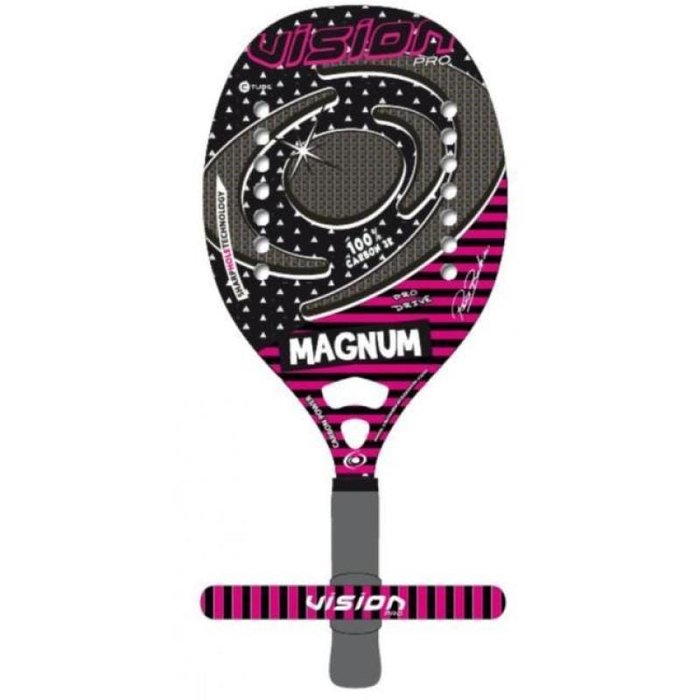A Raquete de Beach Tennis Vision Magnum é fabricada com carbono 3K, tem o peso de 330 g, 50 cm de comprimento e 22mm de espessura. É indicada para jogadores exigentes de nível avançado.