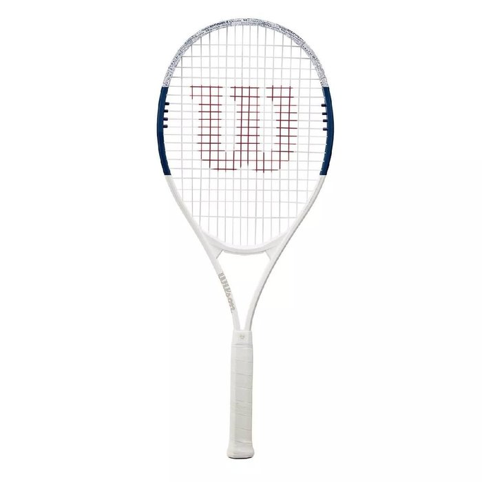 A ponta do aro da raquete apresenta palavras em francês inspiradas em Roland Garros em uma variedade de fontes.