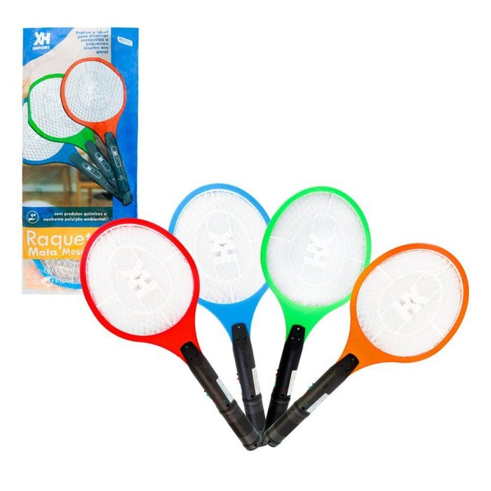 Raquete Elétrica Mata Insetos Mosquito Muriçoca Recarregável Mosca Pernilongos - Sortido Azul, vermelho, verde e laranja