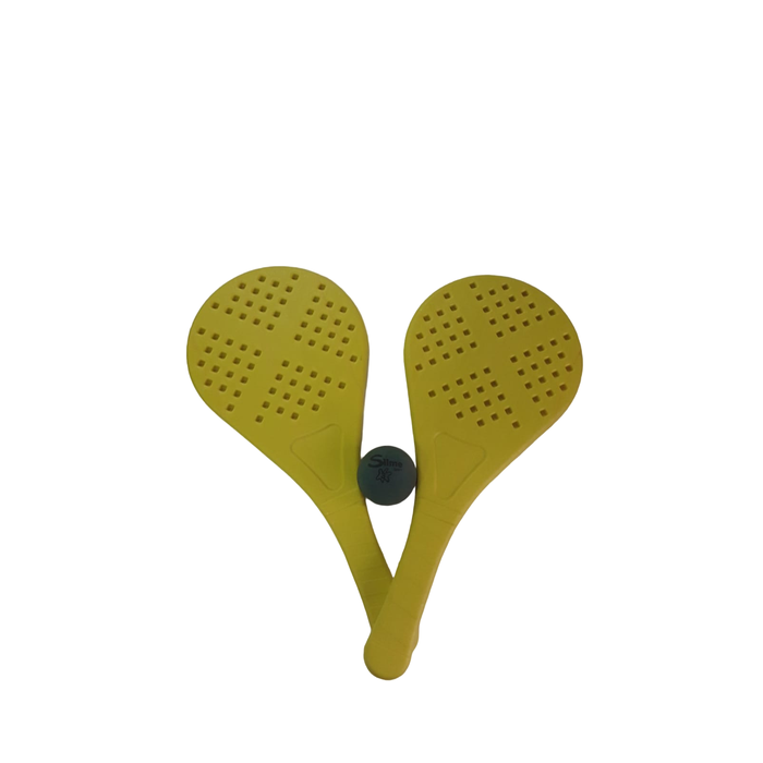 Raquete Frescobol Amarelo na Rede com 2 Raquetes e Bolinha
