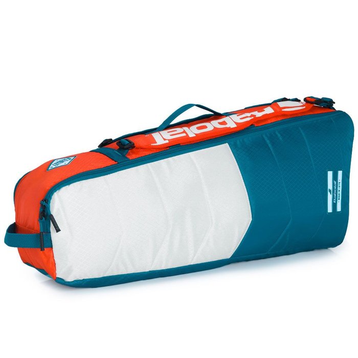 - Detalhamento: Raqueteira dupla, comporta até seis raquetes sem capa, dois compartimentos principais com fechamento em zíper, bolso na lateral. Uma alça de mão para dar mais possibilidades de transporte e com isso mais conforto, alça de ombro ajustável. Escrita Babolat em uma das laterais;