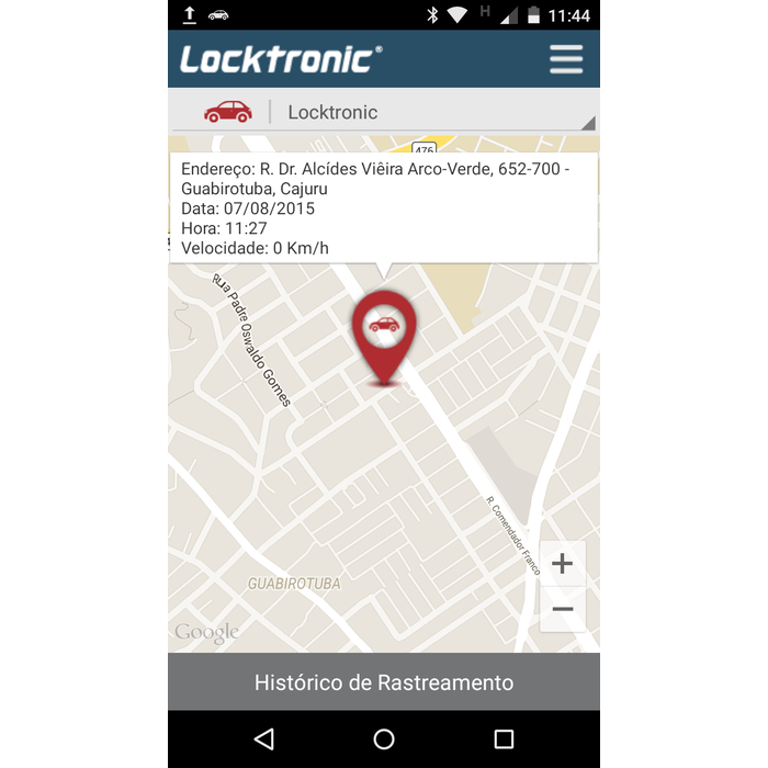 Visualização da localização do veiculo diretamente no celular ou no computador (necessário conexão com internet para visualizar mapa).