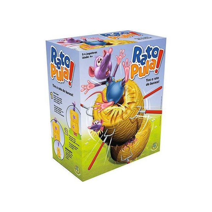 Chegou Rato Pula, a nova brincadeira que vai divertir você e seus amigos. Tire o rato do buraco! Brincar é muito fácil! Basta colocar o rato no buraco e começar a espetar a pilha de feno com os garfinhos. O jogador que conseguir acertar o rato e fazê-lo pular ganha o jogo! Chame seus amigos e venha se divertir!