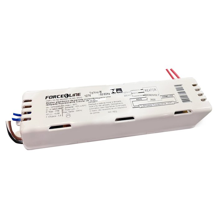 Reator Eletronico Monovolt 1x36/40w 1 Lâmpada Fluorescente - 127V - Force Line 3025