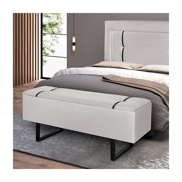 Recamier Banco Bau Quarto Elegance 1,30M Suede Pes de Ferro