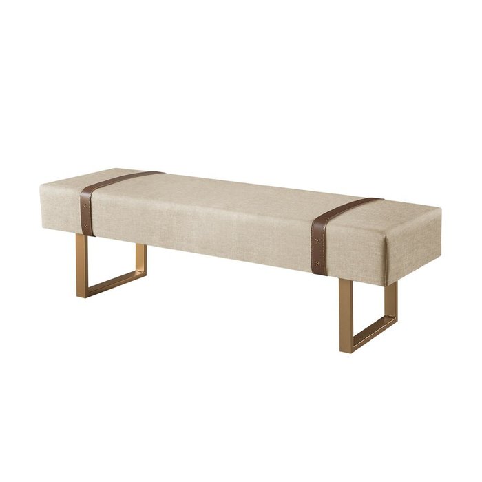 Recamier Banco Puff Londres Linho Bege Claro/Caramelo 1,60m Bege Claro/Caramelo