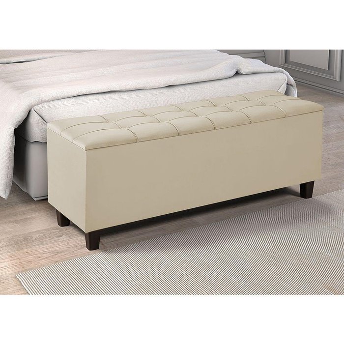 Recamier Baú Capitonê Veludo Bege Bali 1,50m